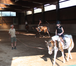 Die Reitausbildung wird an der Longe begonnen. Hier lernen Sie die verschiedenen Grundgangarten kennen. Anschließend wird Ihre Reitausbildung, abgestimmt auf Ihre persönlichen Bedüfnisse, sowohl in Gruppen- als auch in Einzelreitstunden fortgesetzt.